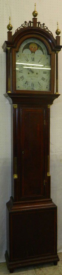 Signed Aaron Willard Inlaid mahog tall case clock.