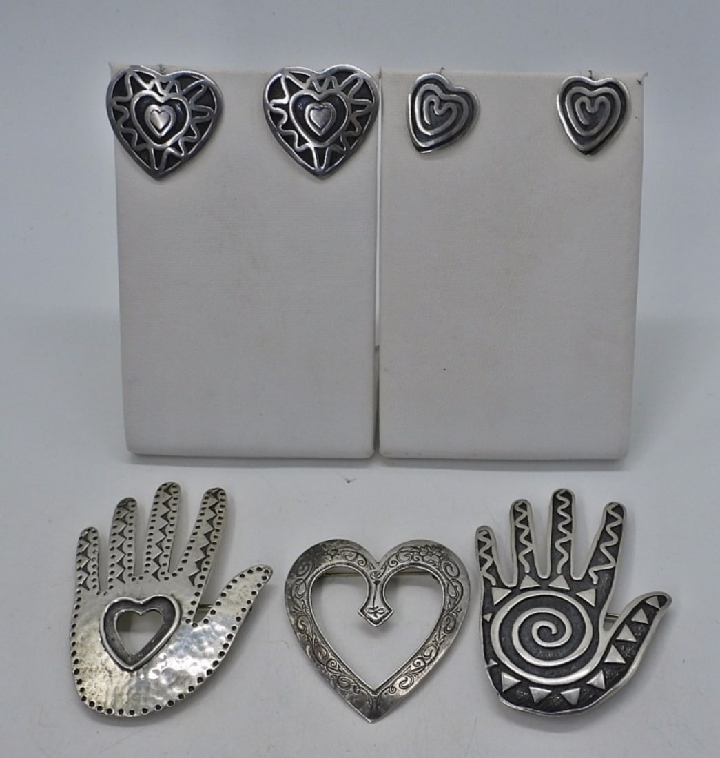 SIGNED "AF" STERLING PINS & EARRINGS