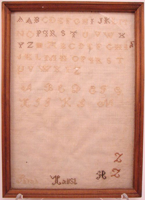 Signed Alphabet Sampler. Framed under glass. Ove