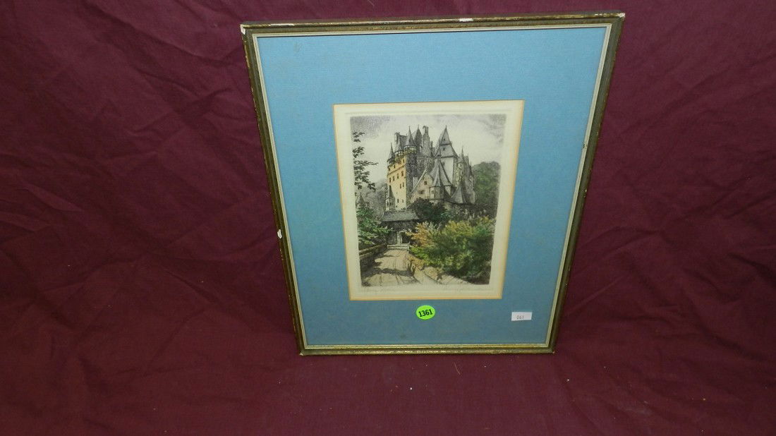 signed and titled, framed castle litho