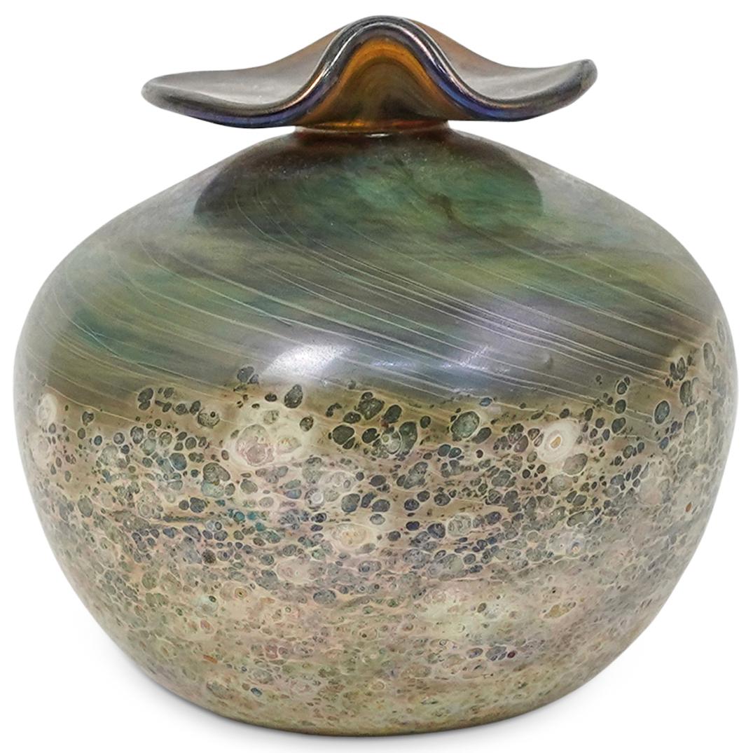 Signed Art Glass Iridescent Vase