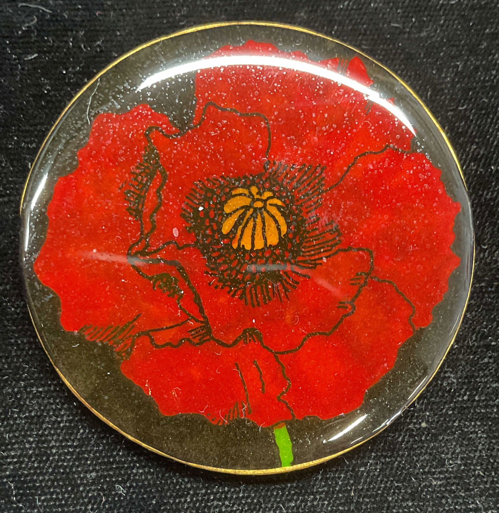 Signed B Hand Painted Red Flower Brooch