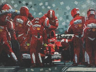 Signed Baird Men in Red Painting