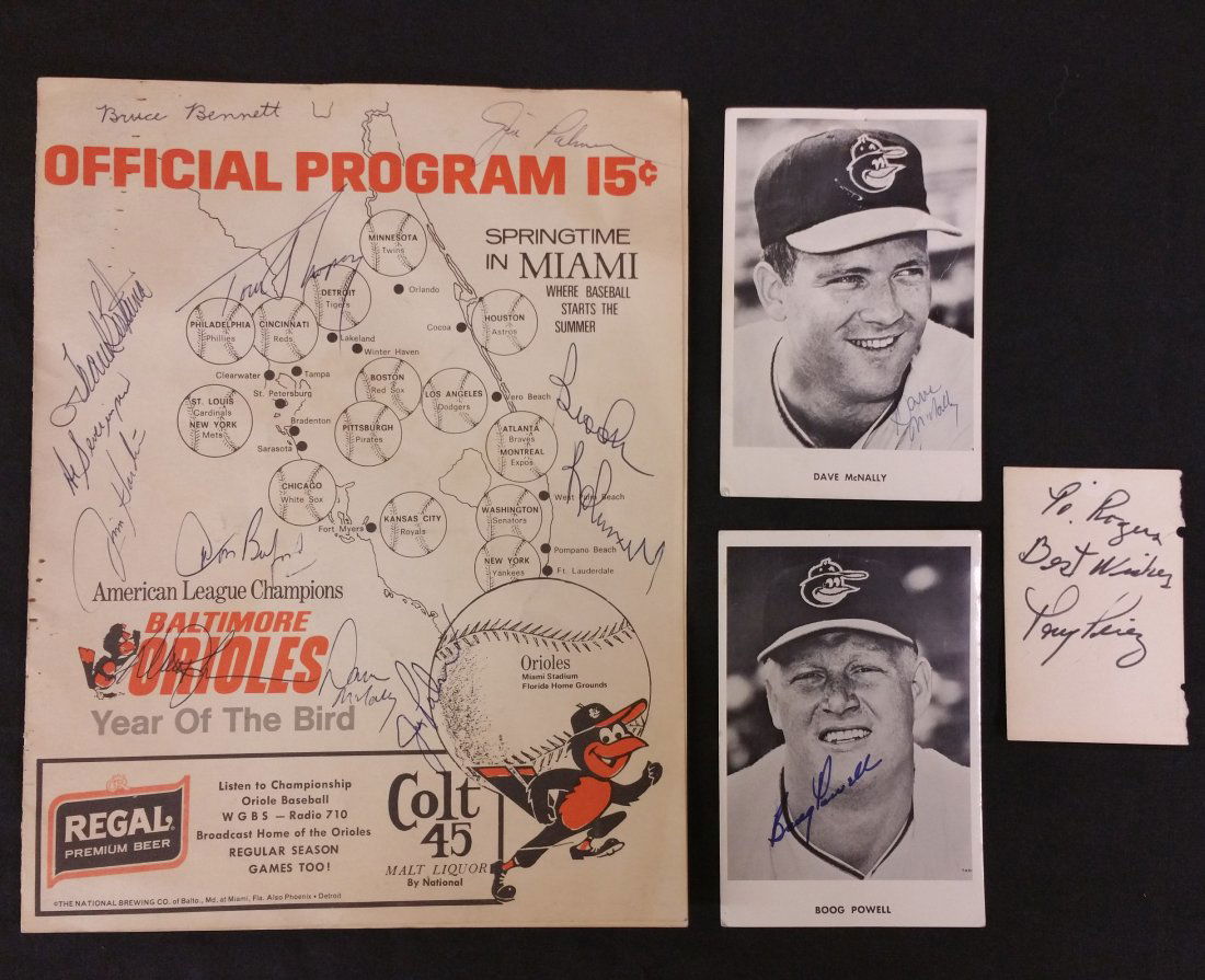 LOT OF 8 SIGNED BASEBALL PHOTOGRAPHS AND PRINTSFeb 15, 2026Postcards Lot of 10 Cleveland Indians Autographed/ Signed 3.5x5.5 Photo4 days LeftBaltimore Orioles Baseball Card LotFeb 12, 2026LOT OF 9 AUTOGRAPHED NY METS PHOTOGRAPHSFeb 15, 2026LOT OF NY SIGNED BASEBALL PHOTOGRAPHS AND PRINTSFeb 15, 2026Baseball Group Lot: Joe DiMaggio, Mickey Mantle, Nolan Ryan & More!Feb 18, 2026AMERICAN BASKETBALL AUTOGRAPHED PHOTOS AND 1997 TICKETSFeb 15, 2026VINTAGE AMERICAN BASEBALL PLAYERS AUTOGRAPHED PHOTOSFeb 15, 20261968-1970's Massillon Tigers Football Programs Inc. 11Mar 02, 202621 Signed 1950s Cleveland Indians Vintage Baseball Photos19 hrs LeftBaltimore Orioles Multi-Signed 8x10 Photo PSA/DNA Jim Palmer Cuellar19 hrs LeftRare 1950 Yankees Phillies Team Signed World Series Program JSA Authenticated2 days Left1967 Baltimore Orioles Signed Minor League Baseball with 18 Signatures708 Lots Away1980 Philadelphia Phillies Signed World Series Program 35+ Autographs JSA COA3 days Left1983 Baltimore Orioles Team Signed Baseball with 26 Signatures PSA DNA COA4 days Left1970 Baltimore Orioles Team Signed Baseball with JSA Authentication5 days Left