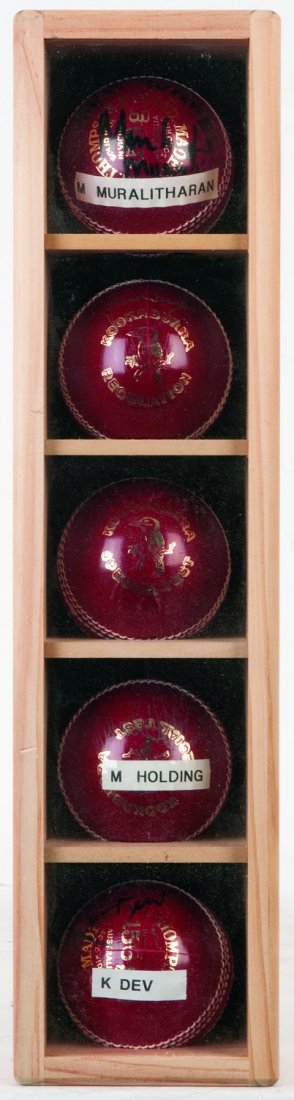 Signed Cricket Balls, In Display Case 10x42cm, Noted