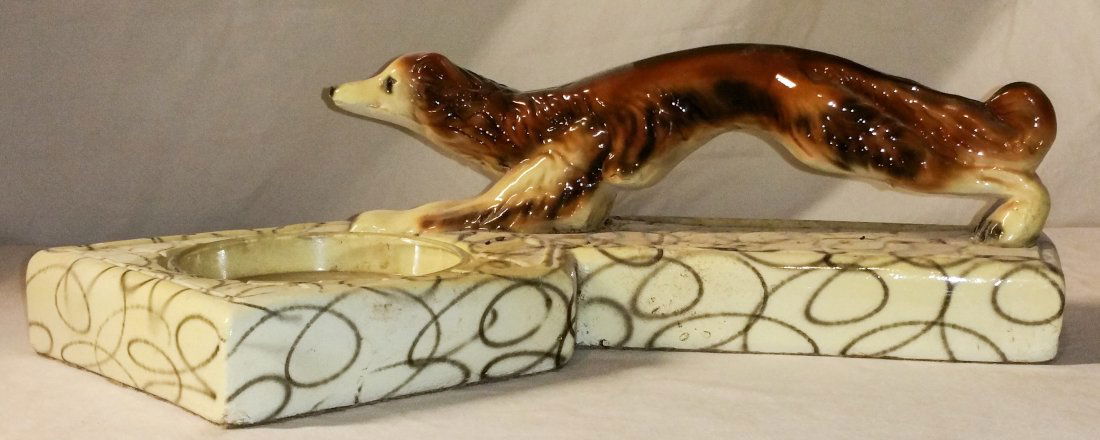 SoldCalifornia Porcelain Art Deco Green Micro-Crystalline Figural Dog Ashtray c1927California Porcelain Art Deco Green Micro-Crystalline Figural Dog Ashtray c1927. Signed. Perfect condition. 5.75"h x 5" x 4". FREE NATIONWIDE SHIPPING for all of your purchases at our Two Day AuctionSee Sold Price