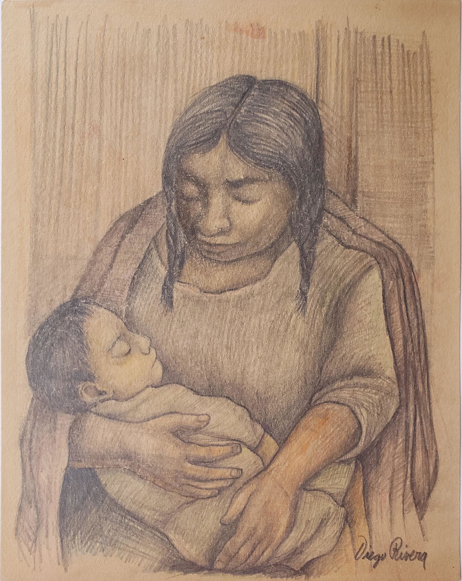 Signed Diego Rivera charcoal on paper