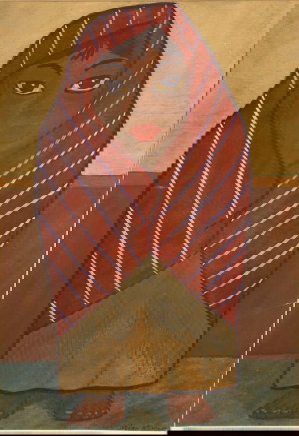 SIGNED DIEGO RIVERA GOUACHE PORTRAIT