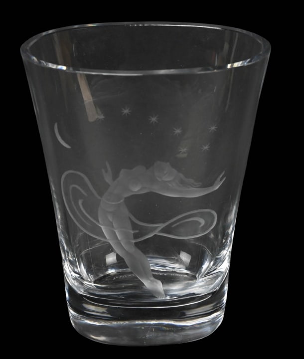 Signed Etched Crystal Vase Dated 1982 Art Deco