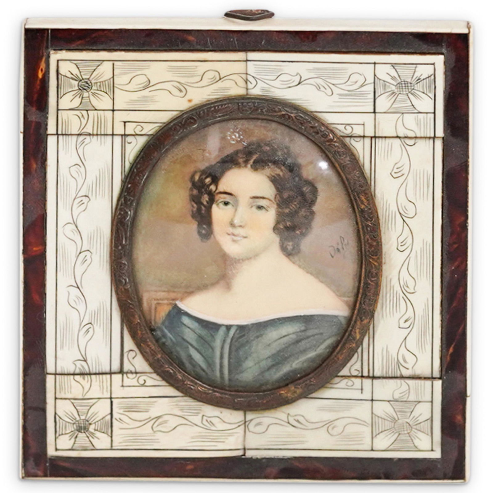 Signed Framed Painting On Bone Plaque