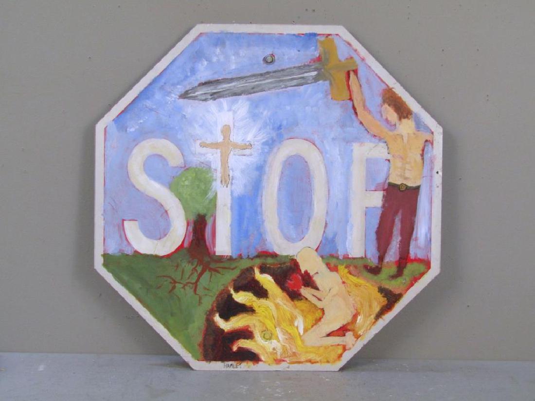 Embossed Vintage Stop and Yield Road Steel SignSam Perry B.1963 Abstract Outsider Art Painting23 hrs LeftUnique Stop Sign, 31h x 31w x 2d inches, Red on White Octagon, PatinatedE.M. Zax- Hand painted metal street signFeb 12, 2026Original Detroit,Michigan Banksy's Night Walker - Rat - Girl Bomb Street Stop Sign PaintingFeb 14, 2026Original Detroit,Michigan Banksy's -Flower Thrower - Camera Rat - Street Stop Sign Painting.Feb 14, 2026E.M Zax- 1/1 unique hand painted metal Street signFeb 12, 2026Mixed media on cloth-like material by Jan KrajewskiFeb 21, 2026Stop Right Turn Only Sign, Red & Green Lettering on White, 25h x 19w x 2d inchesR.A. Miller. Group of Three Works.4 days LeftAmerican School , 20th Century, Freedom, Mixed media on canvas, 24 x 34 inchesFeb 12, 2026Toxic Rain1 day LeftGraffiti Art, Mixed Media on Canvas21 hrs LeftJerry Iverson "Language Series" Mixed MediaFeb 19, 2026Signed Geometric Composition Mixed MediaFeb 26, 2026
