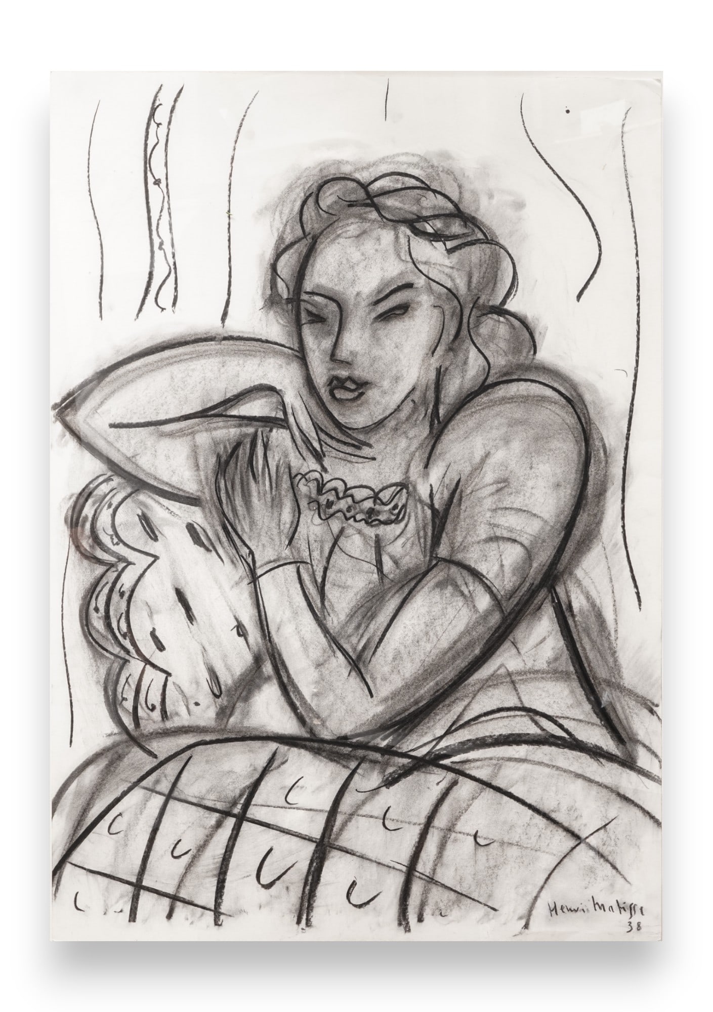 Signed Henri Mattise (Attributed) Charcoal Drawing, 1938