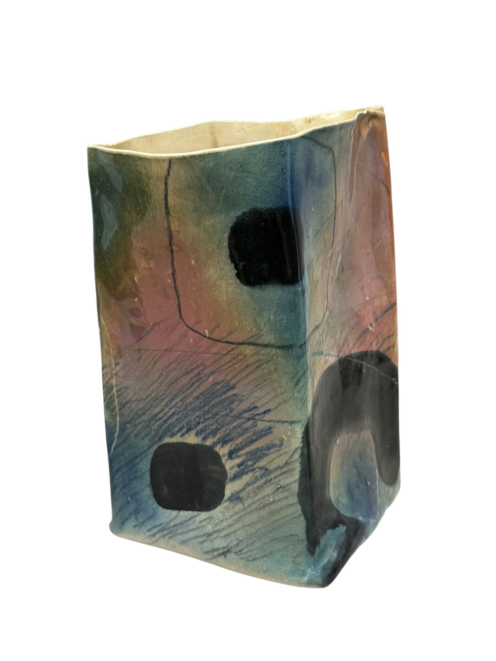 Signed John Ikeda MCM Contemporary Ceramic Paper Bag