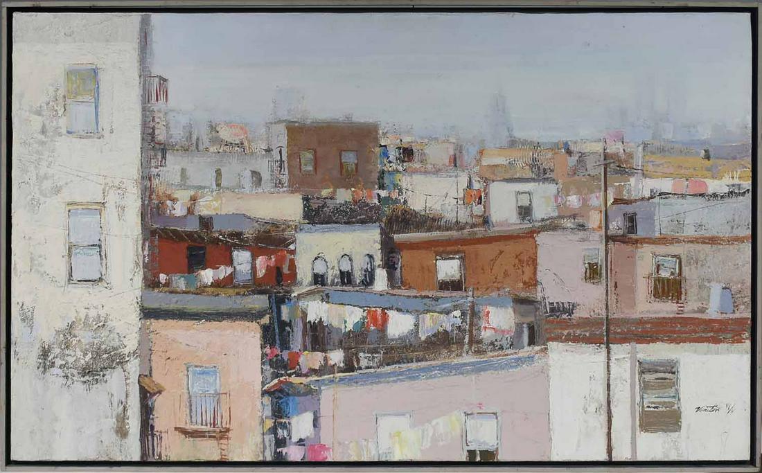 SIGNED LATE 20TH C., O/C, MEDITERRANEAN ROOFTOPS AT