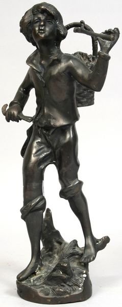 SIGNED MOREAU BRONZE, BOY WITH BASKET