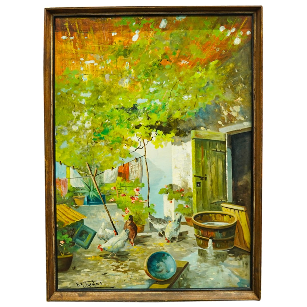 Antique early 20C oil painting signedMar 01, 2026Vintage 20C European oil paintingApr 19, 2026Vintage 20C European oil painting signedMay 17, 2026Vintage mid 20C Danish oil painting signed1 day LeftVintage 20C Haitian oil painting signedApr 19, 2026Vintage 20C European oil painting signed1 day LeftAntique early 20C European oil painting signedApr 05, 2026Antique oil on canvas of Barnyard, chickens and rooster signed illegiblyMar 15, 2026SIGNED MID CENTURY EUROPEAN SCHOOL OIL PAINTINGMar 01, 2026EUROPEAN LANDSCAPE OIL PAINTING SIGNED HOMER CASTELLOMar 01, 2026Wilbur Lansil. Barnyard scene with cows and chickens. Oil on canvas. Signed and dated 1891 lowerMar 01, 2026George Lapchine Technique: Oil painting on board Rural Scene with Chickens4 hrs LeftAntique 19th C. Farmyard Oil Painting on Panel, Chickens & Rooster7 hrs LeftA Large.European or Continental School, Oil on Canvas Rural Farm Scene, Signed8 hrs LeftRUSSIAN MIXED MEDIA PAINTING ATTRIBUTED TO DAVID BURLIUKMar 07, 2026European Oil on Canvas Signed Known 19CMar 05, 2026