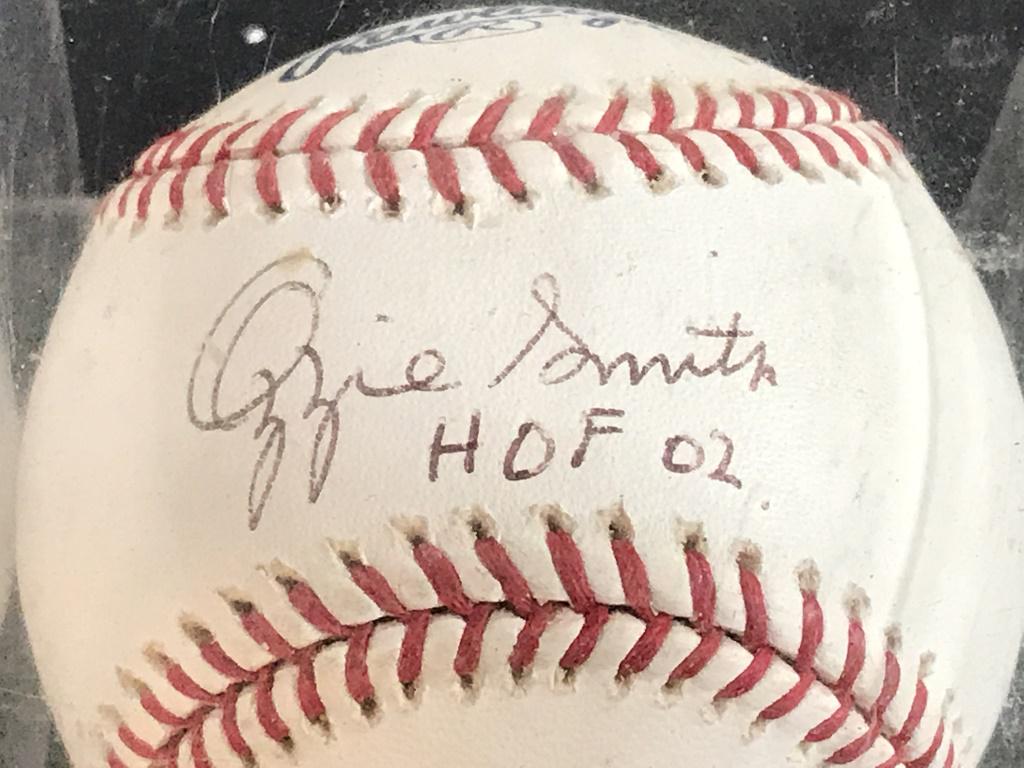 SoldSmith,Ozzie Signed BaseballOsborne Earl "Ozzie" Smith (1954) is an American former professional baseball player. He was elected to the Baseball Hall of Fame in his first year of eligibility in 2002. Signed ML (Selig) ball in veSee Sold Price