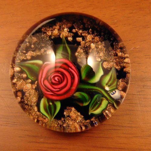 SoldFrancis Whittemore Signed Lampwork PaperweightFrancis Whittemore Signed Lampwork Paperweight with Rose Branch w Leaves. Measures 2 inches. (107)See Sold Price