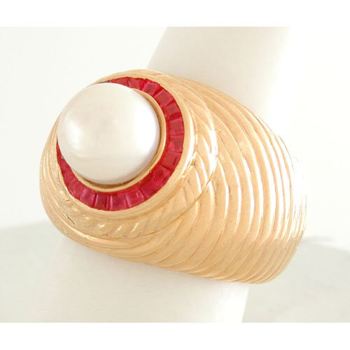Vintage 1950's Pearl Ruby Emerald Cocktail Ring 14K Yellow Gold, 6.49 GramsChairish Auctions4.5(10.4k)$700