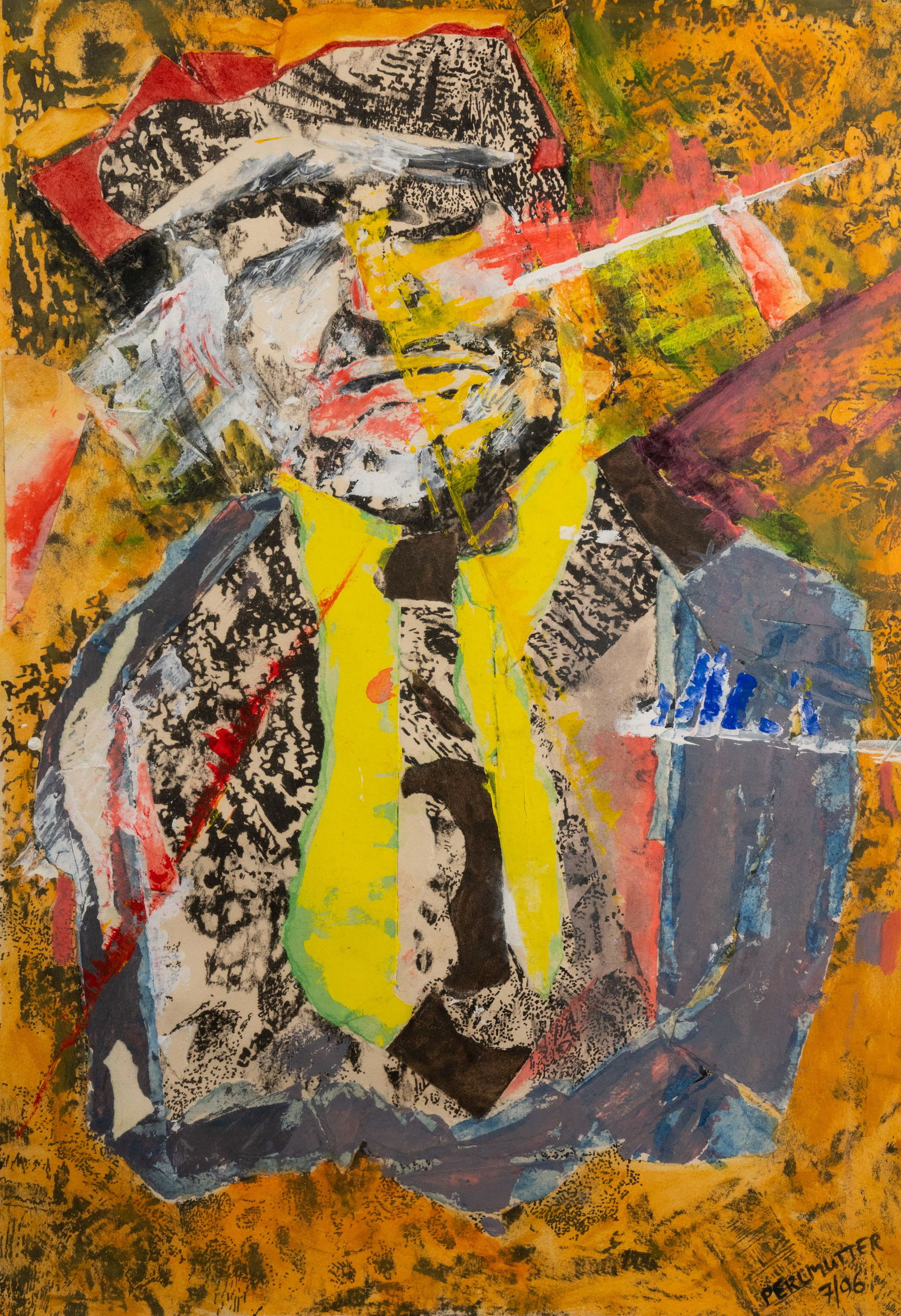 Signed Perlmutter 'Face Portrait' Mixed Media on Litho