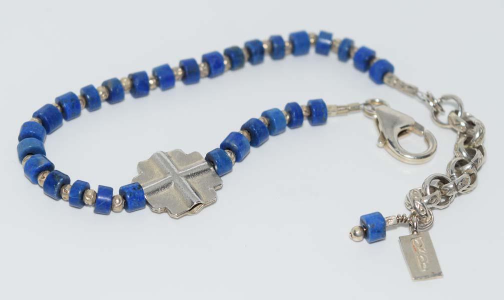 Signed RB Sterling Lapis Lazuli Bead Bracelet
