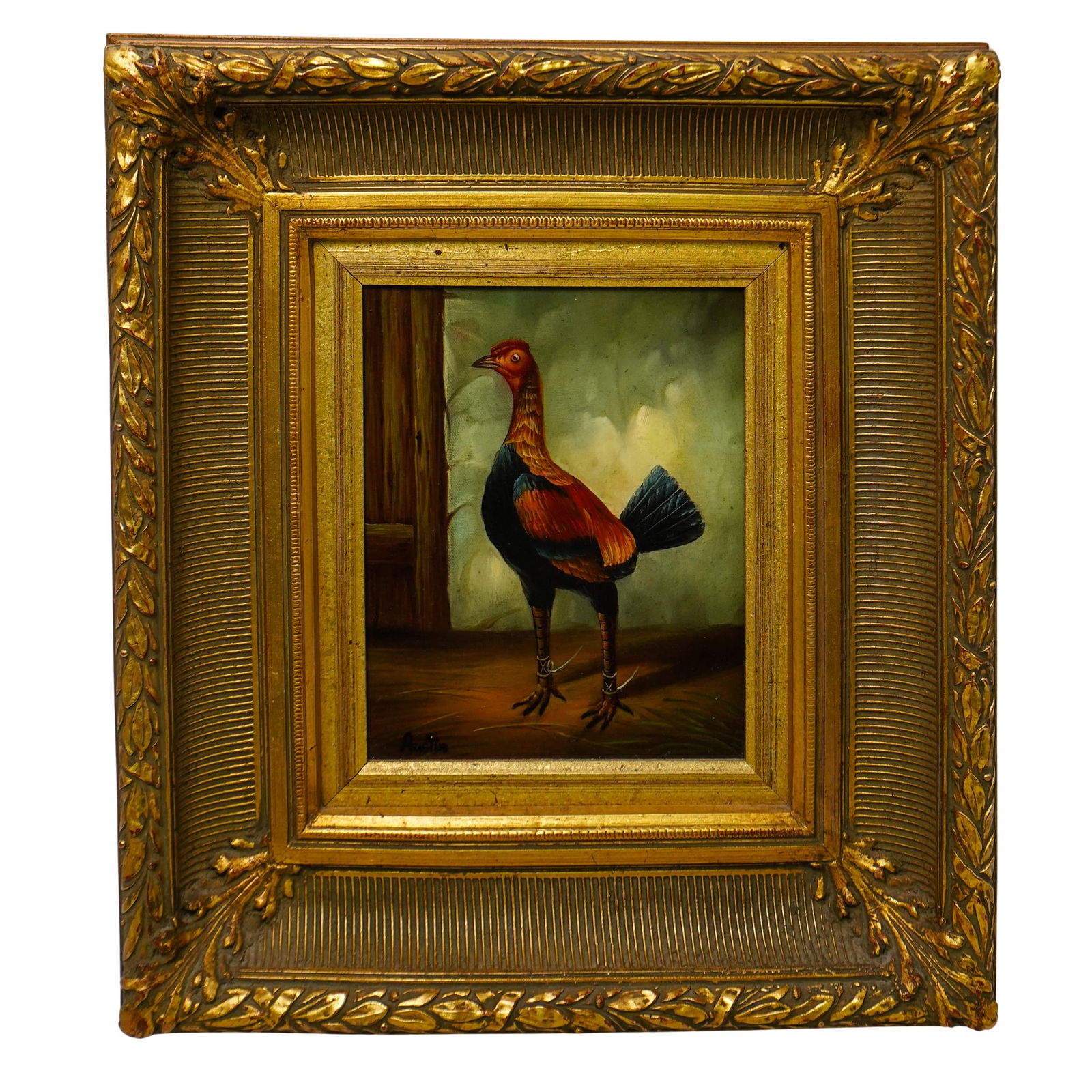 Signed Rooster Oil Painting