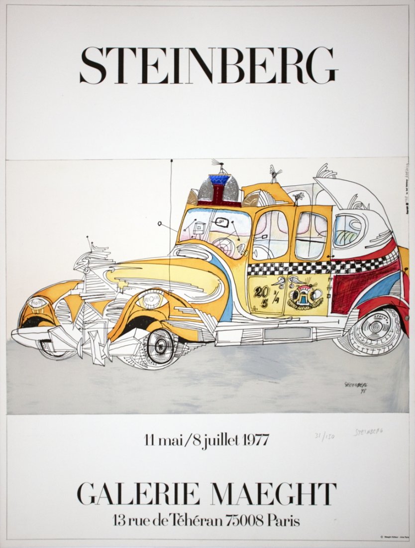 Signed Steinberg Taxi Lithograph