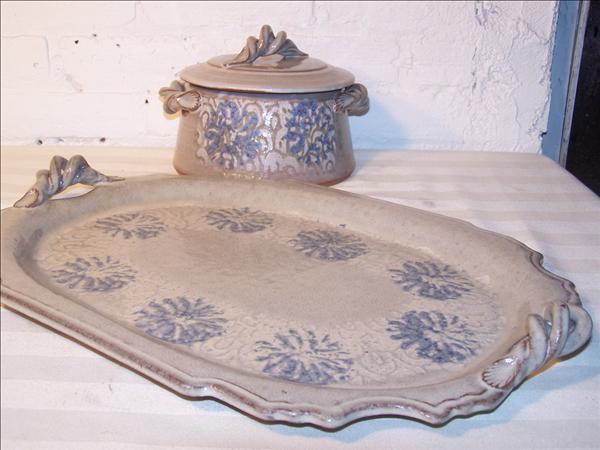 Signed Stoneware serving tray & casserole, tray 2