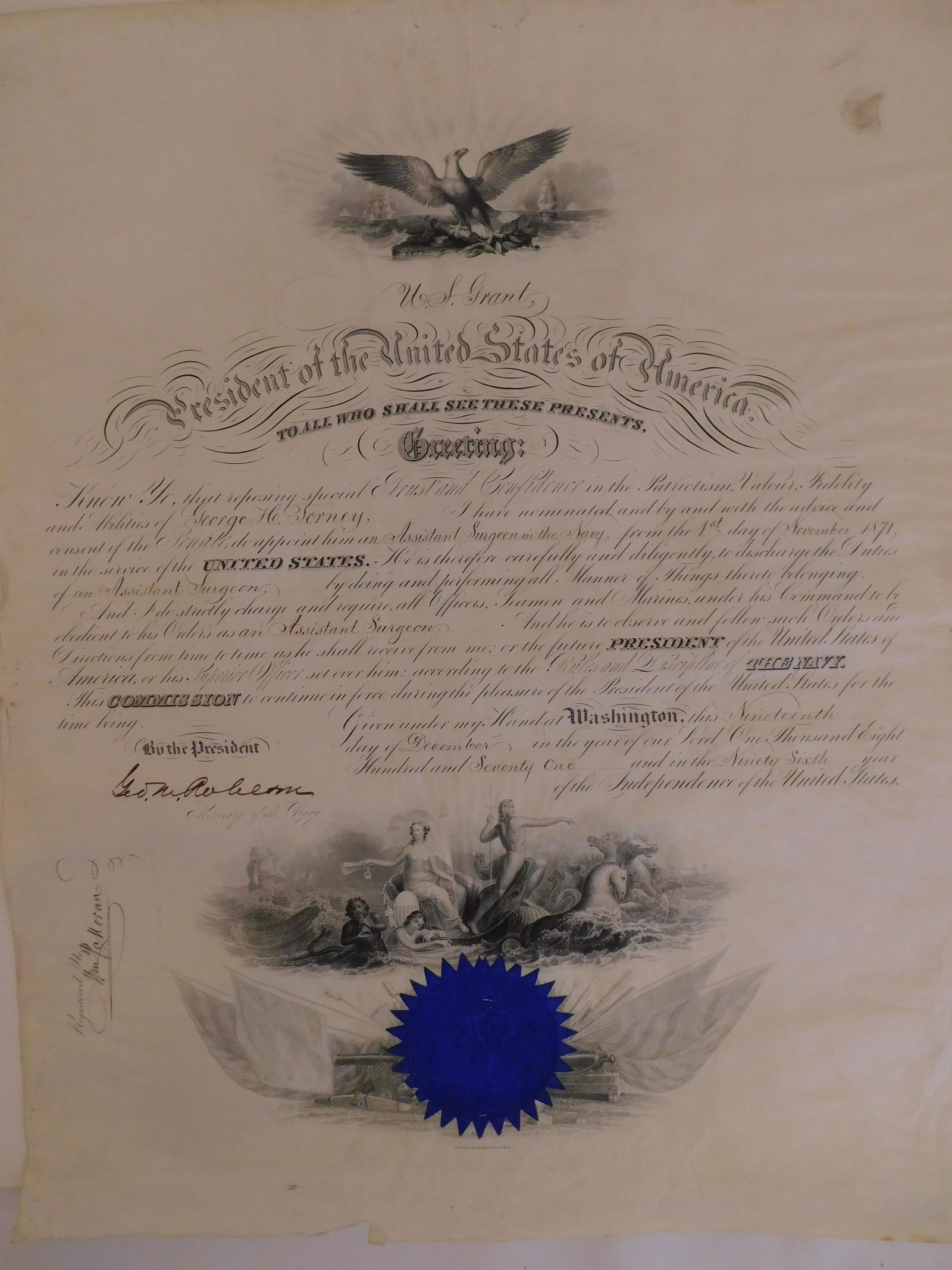 SIGNED US GRANT 1871 APPOINTMENT