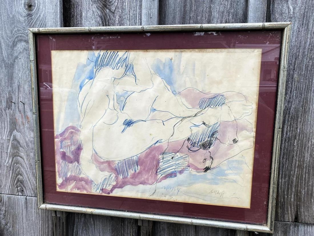 SIGNED W/C : "RECLINING NUDE" 17.5" X 23.5"