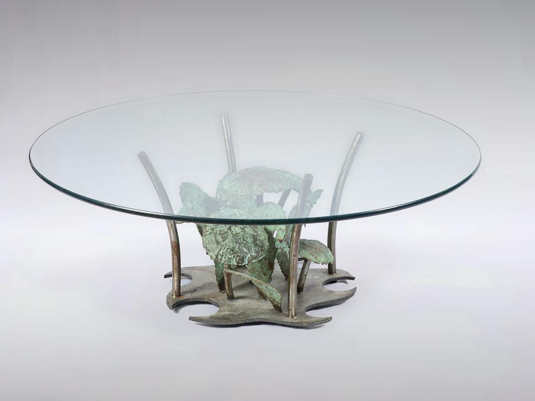 Silas Seandel Style, Brutalist Modern, Metal, Glass, Coffee Table, USA, 1970sSilas Seandel Brutalist Coffee Table Polychrome Brass Glass Top593 Lots AwaySilas Seandel Brutalist Coffee Table Signed 1975 Iron Glass6 days LeftRound Glass Coffee Table with Sculptural Brass Base, Mid-Century Modern Organic Design5 days LeftUnique Silas Seandel Brutalist Steel Coffee Table with Glass Top 19706 days LeftQUALITY NICKELED BRASS COFFEE TABLE BASE WITH THICK GLASS TOP C 1965. TOP APPEARS TO HAVE A3 days LeftGlass Top Coffee Table Attributed to Gilbert Poillerat/Maison RamsayA Christopher Guy gilt metal and glass Dressage coffee table, modern3 days LeftWilly CEYSSENS (1929 - 2007). Coffee table. Belgium.6 days LeftMilo Baughman Style, Brass Tripod Coffee Table5 days LeftMid-Century Modern Sculptural Brass Coffee Table with Curved Glass Top, Organic Contemporary Design5 days LeftPaul Evans, Sculpted Bronze coffee table, model PE-1314 days LeftMattia Bonetti, Rare Oval Meander coffee table4 days LeftA Bronze Base Dining TableMar 03, 2026GLASS TOP WHEAT COFFEE TABLEMar 06, 2026Vintage Round Coffee Table with Brass Swan Heads and Steel Base7 days Left