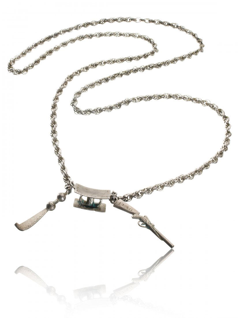 SoldSilber-Collier30 Silber-Collier Fon, Benin Silber. B Anh.: 11 cm. L Collier: 140 cm. Provenienz: Galerie Walu, Basel. Seit jeher begleitet und fasziniert Schmuck in verschiedensten Formen und Materialien die MenschSee Sold Price
