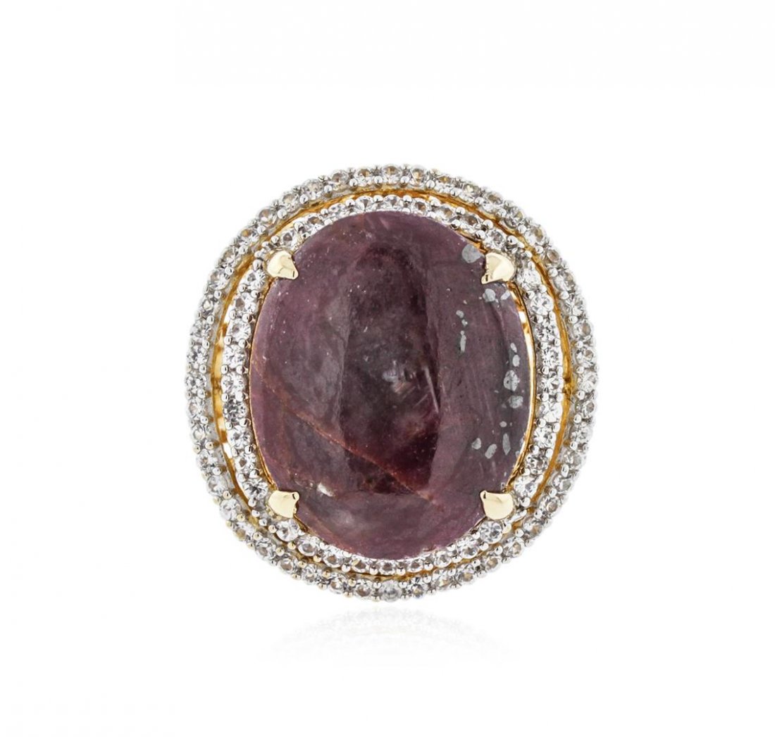 Sold16.73 Ct Ruby & White Sapphire Ring GLAVermeil setting with 16.73 carat purplish-red ruby and approximately 120 white sapphires, 1.99 CTW. Size 8. Includes GLA appraisal report. IMPORTANT: Before bidding, please read the terms and conditioSee Sold Price
