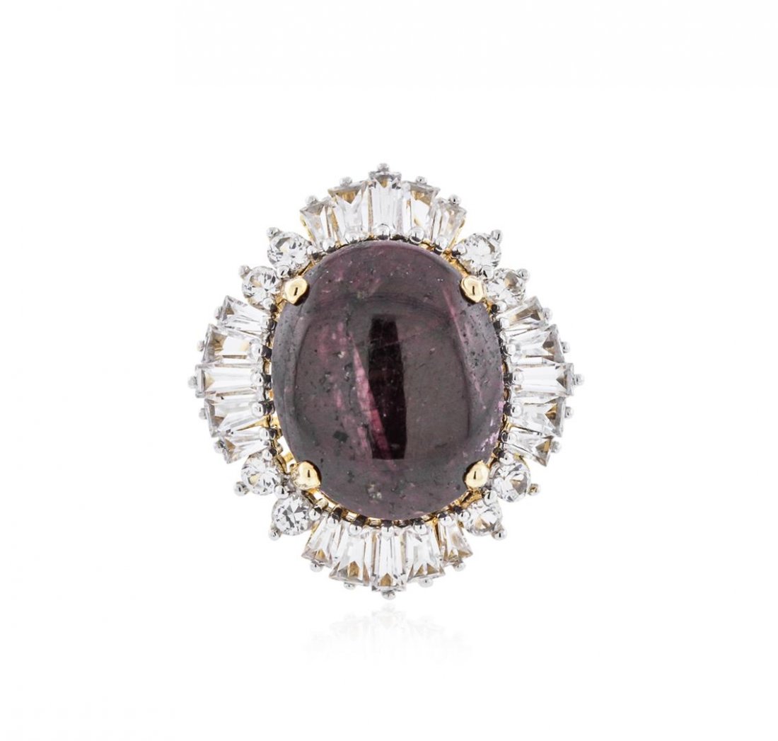 Sold16.73 Ct Ruby & White Sapphire Ring GLAVermeil setting with 16.73 carat purplish-red ruby and approximately 120 white sapphires, 1.99 CTW. Size 8. Includes GLA appraisal report. IMPORTANT: Before bidding, please read the terms and conditioSee Sold Price