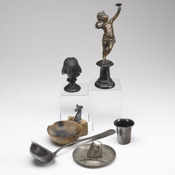 8 pc Lot Weighted Sterling Silver 33.616 OZTMar 01, 2026Bronze Candlesticks, Dog Fig & Hotel Bell 6pc LOTFeb 26, 2026Lot of 5 Silver Plate, incl. George Gebelein of Boston2 days LeftVintage Pewter Tableware Lot: John Somers, Wilton Columbia, Empire, KS3 days LeftA composed lot of four religious silver and silver-plated brass church objects5 days LeftLot of sterling silver accessories and tableware. To include: Chinese wise man figural shakers, O.Mar 01, 2026A Lot of Bronze Figures.17 Piece Brass Collection LotMar 28, 2026LOT OF BRONZE AND CAST IRON SMALLS, TOYSFeb 26, 2026(17) COLLECTION OF STERLING, .800 SILVER & WEIGHTED STERLING TABLE ARTICLES3 days LeftBronze Sculptures6 days LeftSilver Serving Utensils6 days LeftSilver Items, Various Origins6 days LeftASSORTED ESTATE SILVER PLATED UTENSILS & TABLEWAREMar 07, 2026Collection Various Antique and Vintage Cabinet or Desk Articles including LaliqueFeb 28, 2026Pewter and Sterling Serveware [202 grams]6 days Left