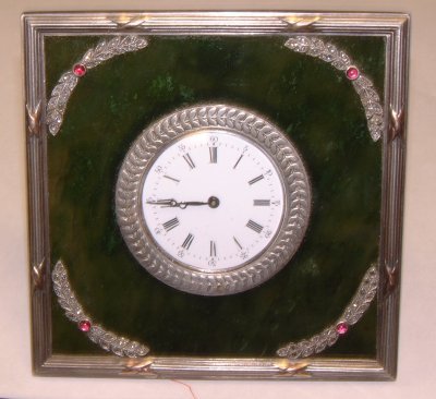 SoldANTIQUE PARIS ASPREY SILVER TABLE CLOCK W KEYA mixed metals table clock by Asprey Paris. The oval case is adorned with Neoclassical taste overlays set with gem stone cabochons and features an iridescent glass sphere on top. The white enamel dialSee Sold Price