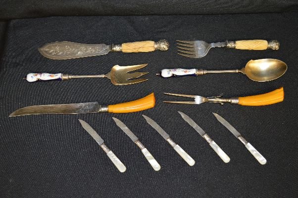 SILVER AND SILVERPLATE SERVING PIECES, BONE, BAKELITE