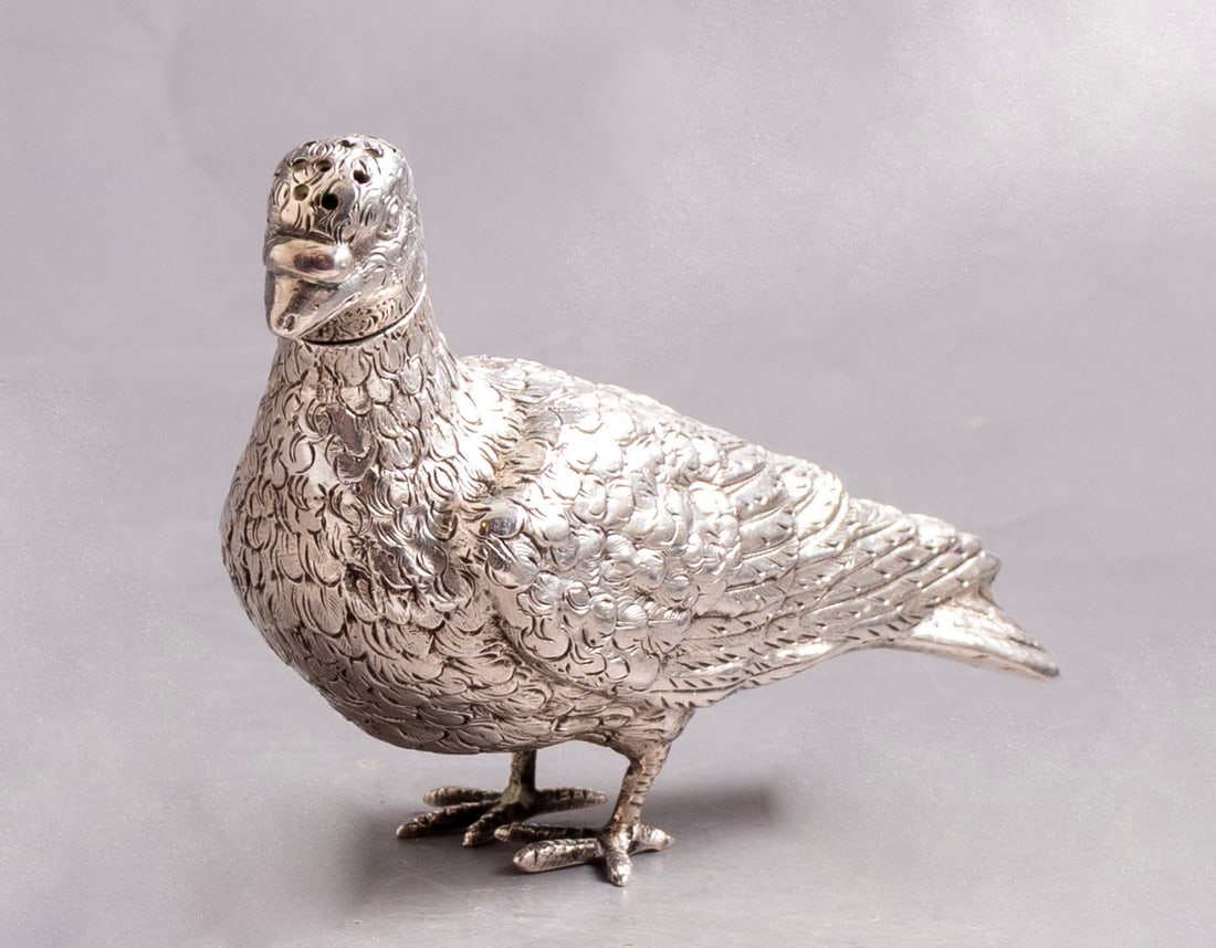 A German silver Great Auk Neresheimer, Hanau, incuse stamped 925A silver pheasant Edward Barnard & Sons Ltd, London 1968A SILVER PARTRIDGE PEPPERETTEFeb 17, 2026SILVER POMANDER SHAPED SPICE CONTAINER. Probably Poland, 20th century. On a floral shaped base withFeb 18, 2026A SILVER SPICE CONTAINER BY ELI GERAFeb 18, 2026A German silver model of a grouse Berthold Muller, Neresheimer, Hanau, import marks for London 1910English pepper shaker in silver. Late 19th century. From large private collection.Portuguese Silver Swan Centerpiece3 days LeftGilt bronze bird-shaped incense burner3 days LeftVintage Duck Shaped Pewter Brass Decorative Box1 day LeftVintage Spanish 916 Silver Bird Figure & 2 OthersFeb 18, 2026An unusual Victorian silver bell John Septimus Beresford, London 1885Set of 2 Silver-Plated Bronze Swan Bonbon Boxes With Removable Liner2 days LeftEnglish pepper shaker in silver. Late 19th century. From large private collection.Japanese Sterling SilverBy Wako Salt Cellar DishMar 01, 2026English pepper shaker in silver. Late 19th century. From large private collection.