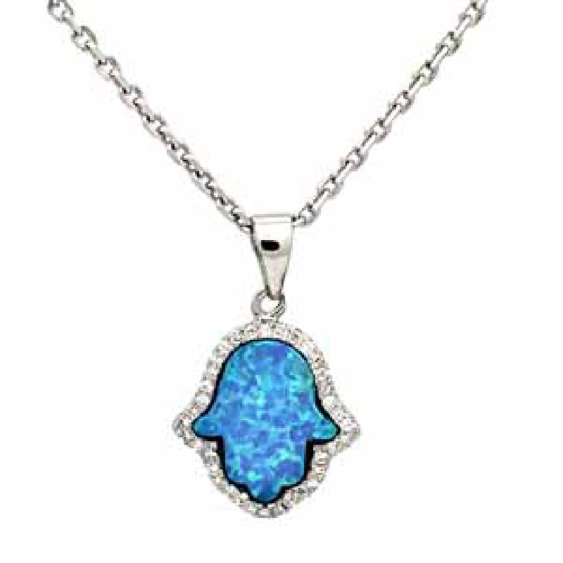 SILVER BLUE OPAL HAMSA PENDANT NECKLACE