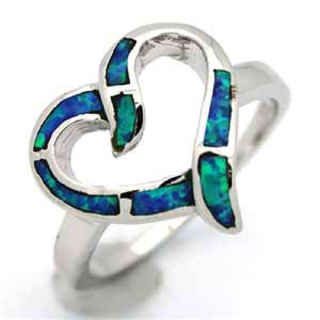 SILVER BLUE OPAL HEART RING