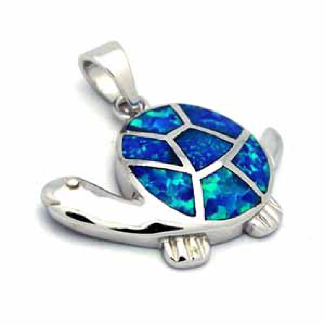 SILVER BLUE OPAL TURTLE PENDANT 17MM