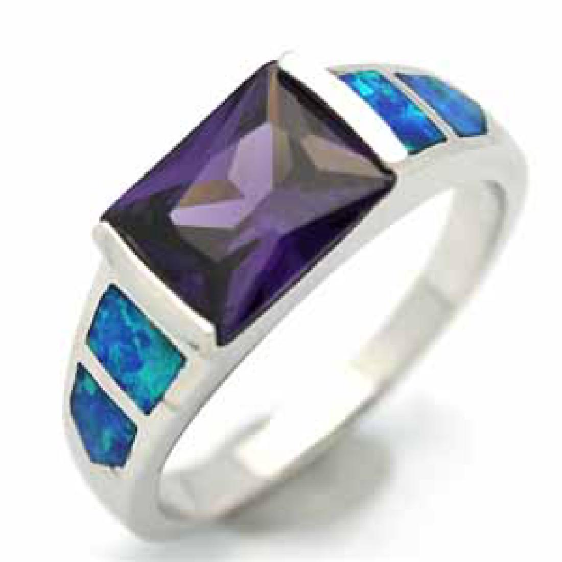 SILVER BLUE OPAL WITH PURPLE CZ RING