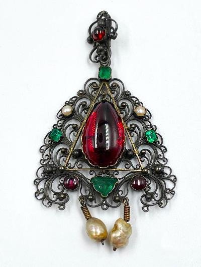 Large Vintage TAXCO 980 Sterling Silver and Carved Stone Brooch/Pin