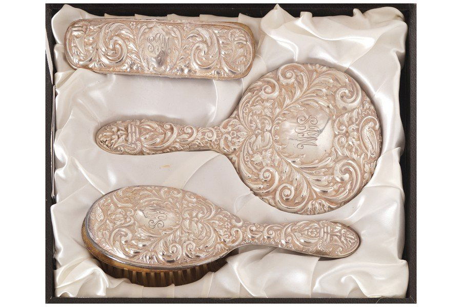 Lot Of Antique Sterling Silverware 513g TotalFeb 21, 2026PAIR OF VANITY HAND MIRRORS238 Lots AwayY A CASED SILVER MOUNTED FIVE PIECE DRESSING TABLE SETFeb 17, 2026Three American Sterling Silver Dresser Articles and an Evening BagFeb 18, 2026(2) STERLING SILVER HAND MIRROR/BRUSHFeb 22, 2026Towle El Grandee Sterling Silver Flatware Set for 12 52 Pieces16 hrs LeftTowle El Grandee Sterling Silver Flatware Set for 12 52 Pieces7 days LeftPair of American Sterling Silver Serving Utensils4 hrs Left(2) STERLING SILVER HAND MIRROR/BRUSHFeb 22, 2026(7) UTENSILS WITH STERLING MOUNTSFeb 22, 2026Group of Silver Dressing Table Items, Variously Engraved with Whitney Monograms3 days LeftInternational Silver Mademoiselle Sterling Silver Flatware Set 67 Pieces with Storage Chest7 days LeftMother-of-Pearl and Silver Plate Fish Servers, Pr.Mar 12, 2026Group of Sterling and Coin UtensilsFeb 26, 2026Collection of Dutch Silver Plated Wares, Brushes/Mirror (likely silver).2 days LeftVintage sterling spoon pins or brooches