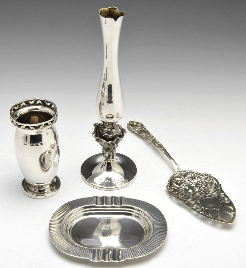 Silver bud vases, ashtray & continental cake slice.