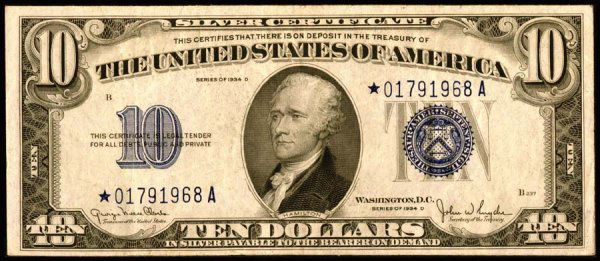 Silver Certificates $10 1934-D* Wide