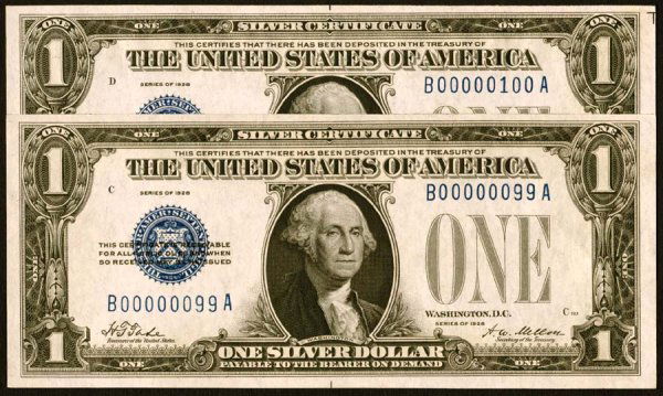 Silver Certificates $1 1928 #B99A & B10