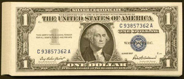 Lot of 8 - 1957/1957-B $1 Notes - Silver CertificatesLot of 2 - 1953-A $5 Notes - Silver CertificatesLot of 3 - 1935 E/F/G $1 Notes - Silver CertificatesSet of 9 Consecutive 1957-B $1 Silver Certificates Uncirculated US Notes22 hrs LeftSet of 10 Uncirculated 1957-B $1 Silver Certificates Consecutive Serial Numbers4 days LeftUS 1957 $1 Silver Certificates, Pick-1619US 1935-1957 $1 Silver Certificates, Paper, Fr. 1608, 1614, 16201934 $1 Silver CertificateFeb 26, 20261957 USA $1 Silver Certificate Z84243154A – Blue SealMar 01, 20261957 $1 Silver Certificate FR. 1619 38 Non-Consecutive U-A Block Gem CUAvailable to Buy Now1923 $1 Silver CertificateFeb 26, 20261957 United States Silver Certificate One Dollar S82857771A5 days Left1957-A $1 Silver Certificate 34 Consecutive Notes Superb Gem CUFeb 25, 2026United States 1935E One Dollar Silver Certificate – Series G95683272I5 days LeftUnited States 1935A $1 Silver Certificate, Serial G22682321A5 days LeftUSA 1935E $1 Silver Certificate – Serial A70267305IMar 01, 2026