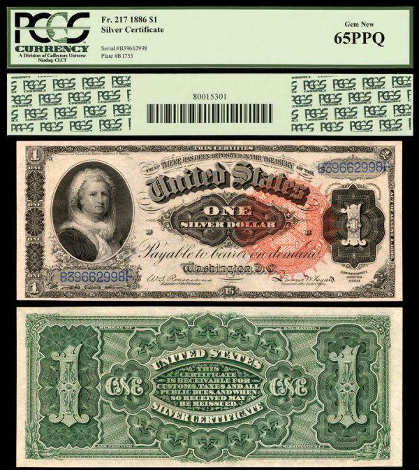 Silver Certificates Fr. 217 $1 1886 A Marth