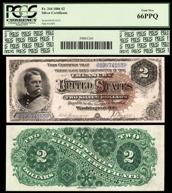 Silver Certificates Fr. 244 $2 1886 An ama